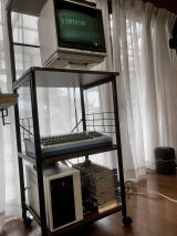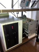 I made this home-brew computer in 1982. CPU is Z80A, clock is 4MHz, memory is 64KB DRAM、CRT is green display FDD is 8 inches double density 、P-ROM writer is provided. OS is CP/M. I can run BASIC and PASCAL on it. I put the rack (core cards in it ) in the case.(above) |