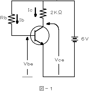 (2)図−1に示すトランジスタ回路は、( イ )バイアス方式という。この回路のトランジスタのIb−Vbe特性、Ic−Ib特性及びIc−Vce特性がそれぞれ図−2〜図−4で示されるとき、動作点を負荷線の中央に置くためには、ベースバイアス抵抗Rbを( ウ )キロオームにする必要がある。