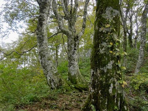 なる。トトロのブナもある。一目でわかる異形ぶり。太い木も多いが樹冠の下に広い空間が