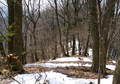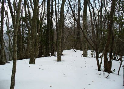 この斜面は雪が多く残っている。幹の周りが解けていて早春のようだ。