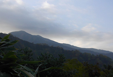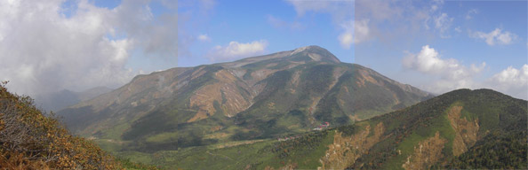 三角錐でかっこいい。山並みだけでなく、その懐に赤黄緑取り混ぜての絨毯が一面。