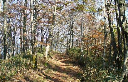 最高潮。ブナも出てきました。若丹尾根の真骨頂というべきでしょう。作業道と暗い山道を