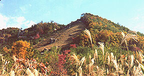 時期があったんだぁ。見直してしまった。その横に深山。きみどりのササ原に赤い