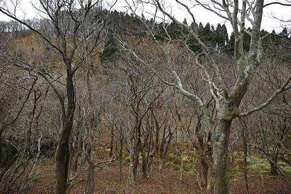 カメレオンの舌のように延びた689mP尾根は植林が中間にあるが、その前後は良い感じの雑木林。