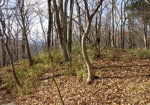 落ち葉の尾根はやがてササが覆ってきた。期待していたほど落ち葉だらけの尾根というわけには