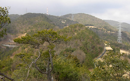 ここから中山寺へ下るのは初めてだ。大峰山の展望地に寄ってみた。長尾山の奥が削り取ら