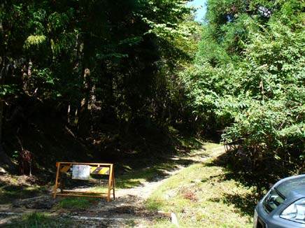 峠脇は2m程の崖になっているので下りる所を西寄りに選ぶ。峠に下り立つと、わーさんの車がある。