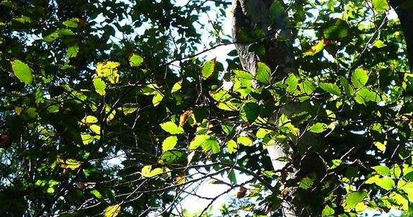 いい天気で陽射しは緑の葉を抜けて射し込む。新緑の季節と見まがう程の輝き。