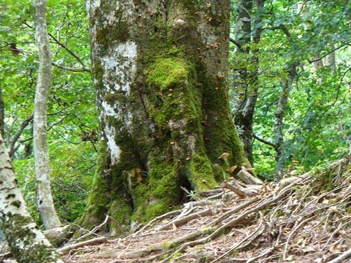 尾根上を登って左に曲がる所で、前方に立派なブナが枝を広げていた。Ca1040m。