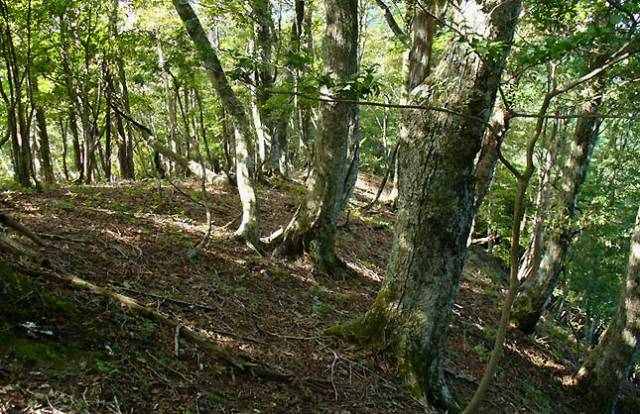 更に南下する。同じような林が続いて感激も薄れた頃、Ca965mコブを越えて素晴らしい林に出合う。