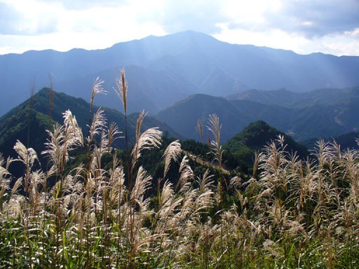ススキの中を少し登ったら西の山並みが開けた。展望としては本日一番の開放感である。(^^;;