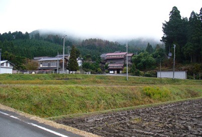 中江集落の朝 (右の杉の木から林道へ入る)