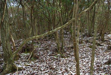 登っていく。しかし今までの明瞭な道標からするといきなり何もない林である。