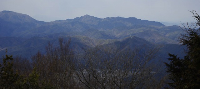 多紀アルプスの峰がうねうねと並ぶ。南の大野山や深山は見えるかなと、南のハイク道を少し辿り、