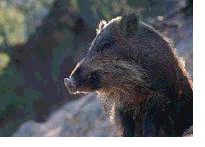 寝起きのイノシシが大笑い。でも、ほんとはあくびです。