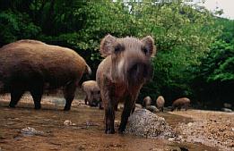 芦屋のイノシシは、鼻先を川に突っ込んで、集団で川底の餌(木の実や人のやった米粒等)を探します。その姿はまるで、ザトウクジラのバブルネットフィーディング!?