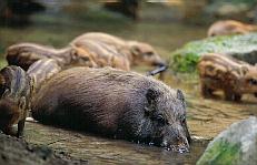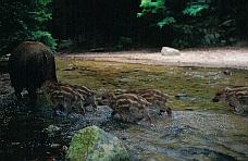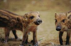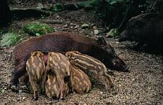 6月のある日、お母さんイノシシは餌場にウリ坊を連れて来ました。さあ、一年で一番賑やかな季節がやってきました。