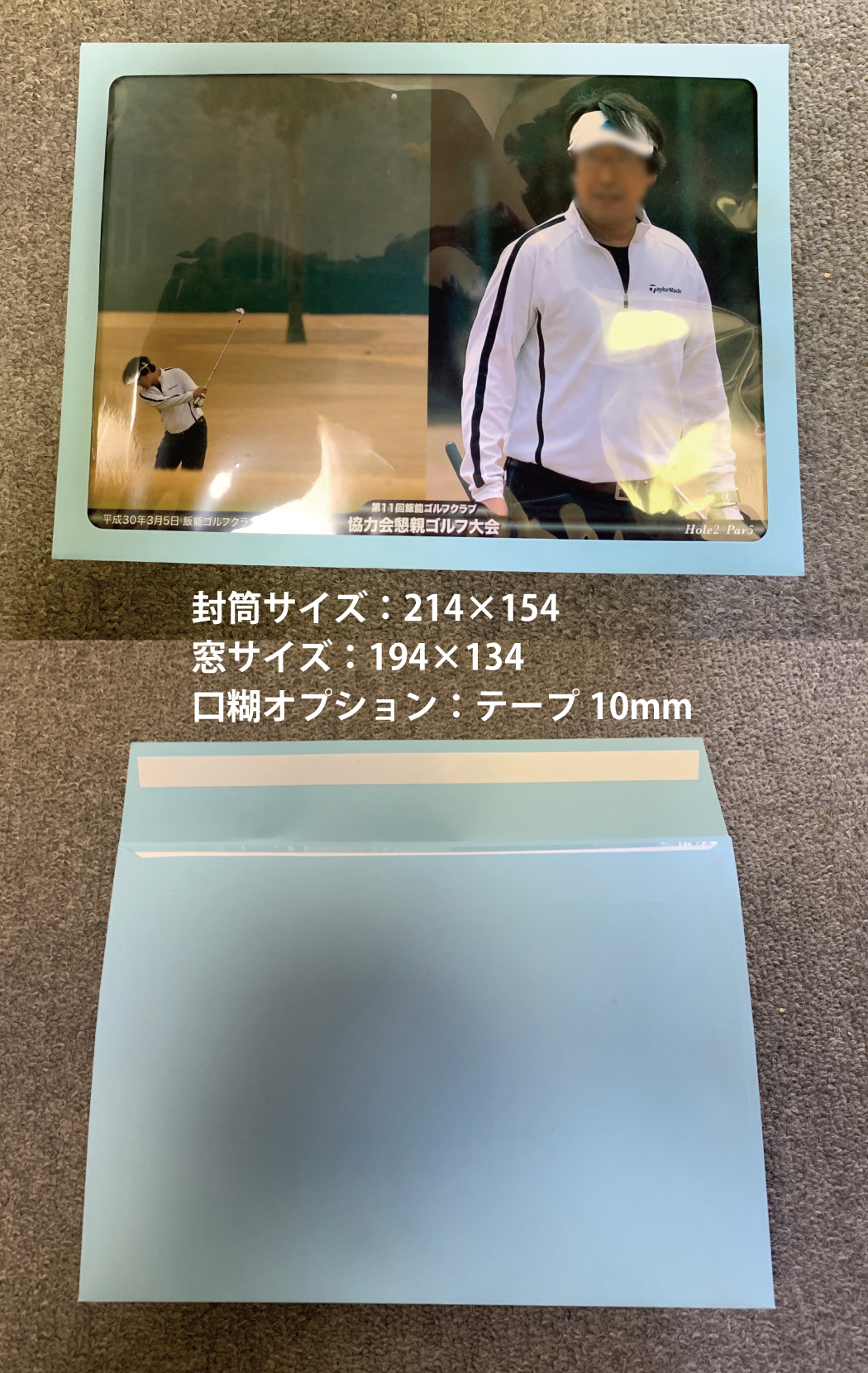 さらにアルバムにしまい込むような小サイズではなく、額縁に飾っていつでもご覧いただけるサイズが理想です。 写真下部には日付、ゴルフ場名、大会名が記載されますので、お客様は主催者様との関係をより身近に感じてくださると思います。