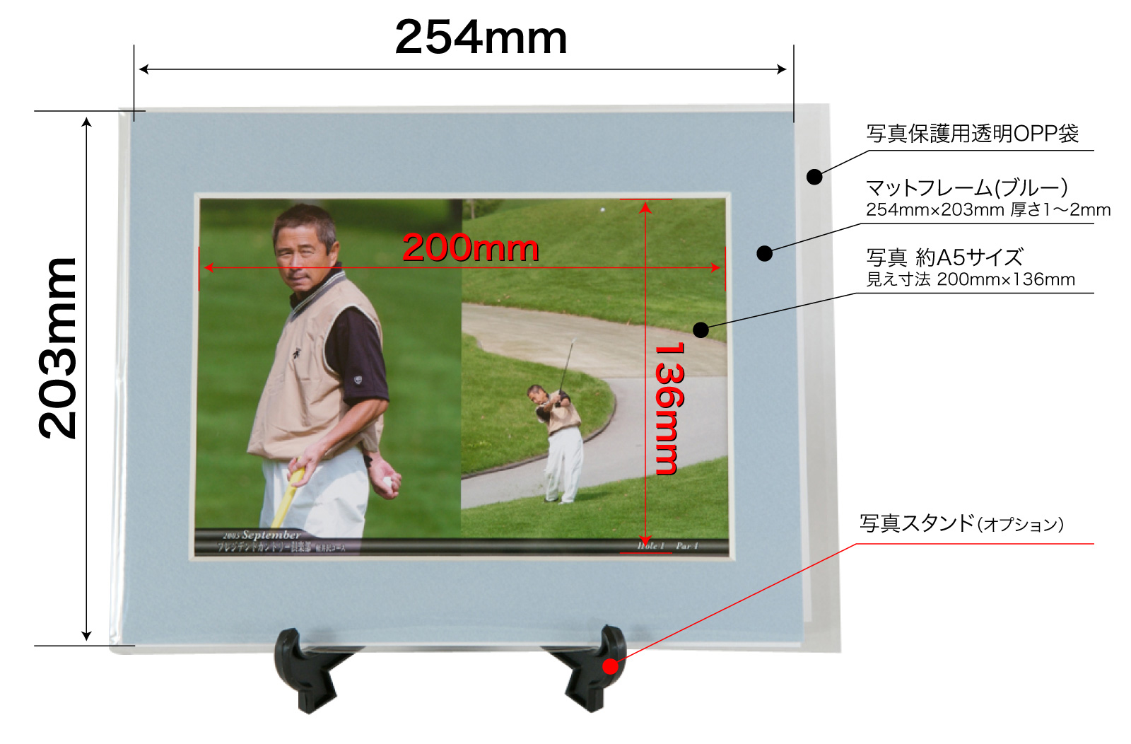 透明OP袋、マットフレーム、写真、