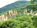 <屏風岩>屏風を立てたように見える大岩石で、弘法大師が弥陀の名号を岩面に記したと伝えられる。