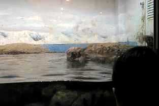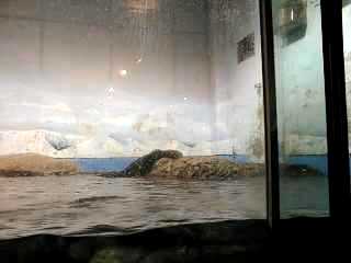 餌の時間を察知して扉に向かうラッコ。 この日は大体10人ちょっとぐらいの お客さんと飼育係の方とで一斉にジャンケン をして5人が選ばれます。 思ったより時間になってもお客さんは来ない。 他のショーを見ているのだろうか、飼育係の方も 「あまり知っている人がいない」と言ってました。 |