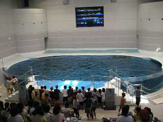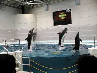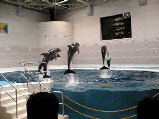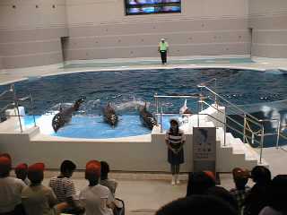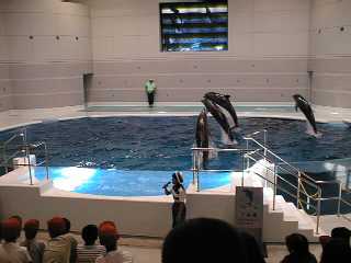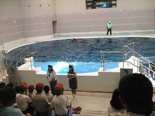 次にいよいよイルカのパフォーマンス。 ほとんどジャンプのみだけど、芸をするのは まだまだこれからじゃないのかな。 |