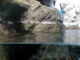 母親が水槽のガラスと岩の間をさぐってましたが、 何があるのかはわかりませんでした。 |