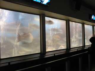 | 日本でもいち早く取り入れられた回遊水槽。これにより魚の寿命も延びたんです。 | |