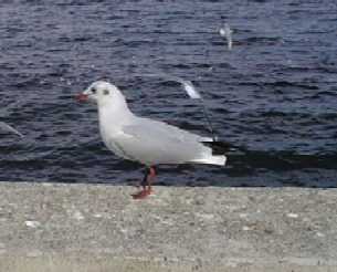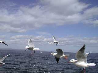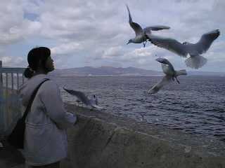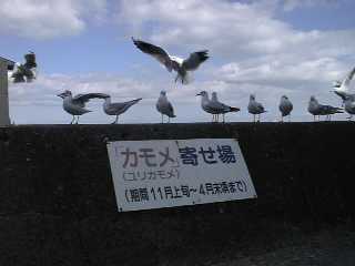 好物はなんと「かっぱえびせん」。 売店で売ってます。投げると見事にキャッチ! 左の写真はキャッチする瞬間を撮ったものです。 |