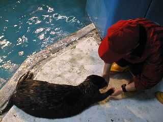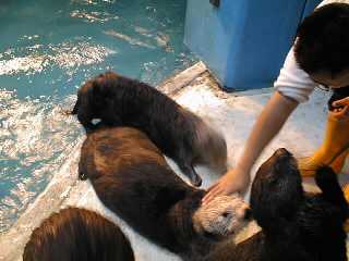 えさの時間が終わっても、まだえさをせがみに来ます。
