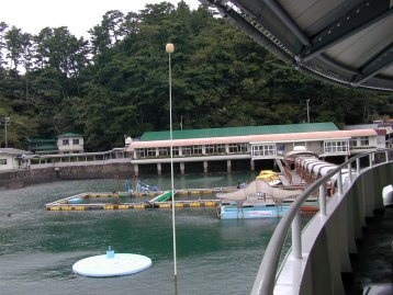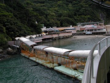 右が入り口方向、左がラッコハウス方向。それぞれ海の上に浮かんだ通路でつながれてるのです。