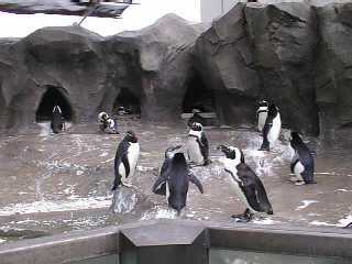 外の施設の一番奥にペンギンがいました。この日はちょっと寒く、長袖を着てる人が多く見られました。一方の寒さに強いペンギンたちですが、左のように逆に夏の暑さでバテ気味に見えて、全体的にぐったりしてました。元気にしてたのは下にある写真のペンギンだけ。私の好きなスーパーハード(イワトビペンギン)もじっとしてほとんど動きがなかったです。サンシャインはお客さんが多いから見られることによるストレスが溜まってなければいいのですが。
