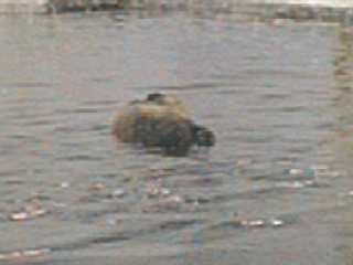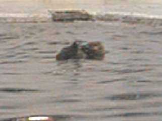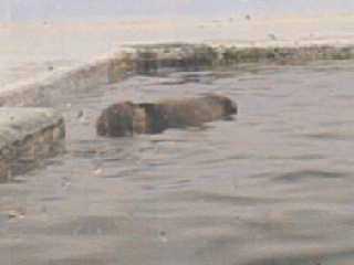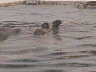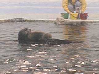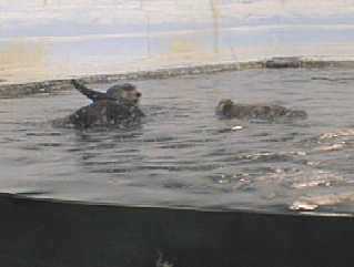 | お母さんのマイがグルーミングをしていたり、エサを食べているときは 時々こんなふうに赤ちゃんが1頭だけでプカプカと浮いてます | |