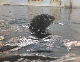お客さんの近くにきても少しも動じない。 やはり水族館生まれですね。 水槽の底まで潜って食べ残しを拾ってました。 気に入ったものがあれば食べてます。 |