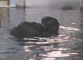 まずは授乳の様子。 重さでお母さんの体の大部分は水に沈んでしまいます。 |