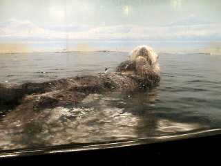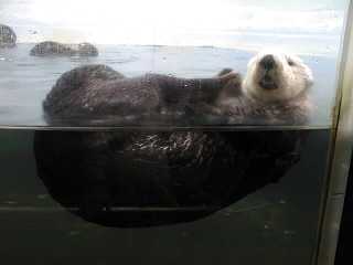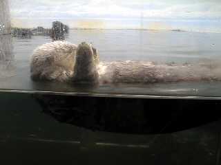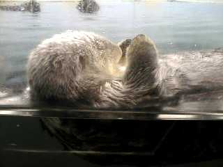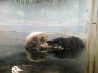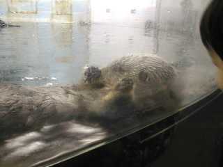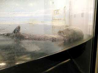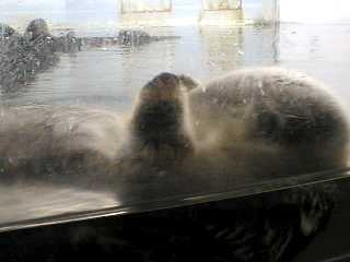 えさの時間。水槽の中をグルグルと泳ぎながら食べます。