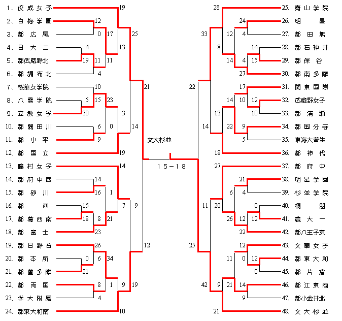 女 子 優勝 文大杉並 2位 佼成女子 3位 都東大和南 4位 青山学院 (以上関東大会出場)