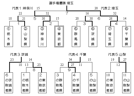 埼玉県 28 (14-11, 14- 5) 16 神奈川県