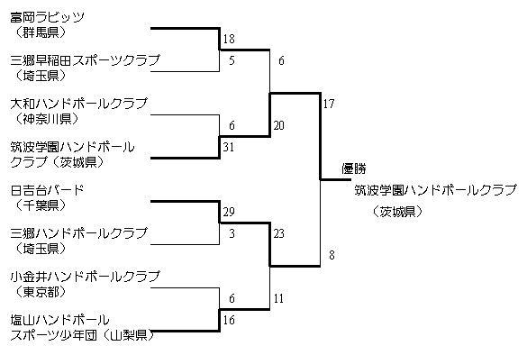 筑波学園ハンドボール 31 (17- 4, 14- 2) 6 大和ハンドボールクラブ