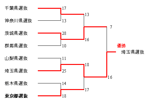 東京都選抜 18 ( 5- 7, 13- 7) 14 栃木県選抜