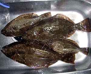 ・ヒラメ....4枚 1.3Kg 53cm 1.2kg 50cm 0.6kg 40cm 0.3kg 30cm [エサ] 活きイワシ [仕掛け] ・オモリ......60号 ・自作 ・幹6号、1.5m ハリス6号、85cm クレーンサルカン 親針...ヒラメ8号銀 孫針...トリプル 親針チモト夜光ビーズ ![]() [棚] 水深 35m [釣座] 右舷トモ2番目 [料理] ヒラメ 刺身 ムニエル カルパッチョ [感想] なぁ〜んつったって11ヶ月ぶりの釣りでござんす。 船に乗れただけで大満足。 天気も良く俺っちの再スタートには十分な釣果でやんした。 |