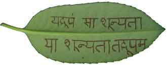 飯島先生から梵字を読み書きできるようにせよと厳命されるも、毛筆縦書きは不得手、そこで鉄筆でタラヨウに