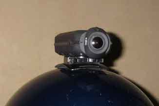 バギー車ではカメラはヘルメットの右脇に装着したが、バイク用風防ガラス付き無線マイク組み込みヘルメットでは風防ガラスとカメラが干渉するため、ヘルメット頂部につけた。