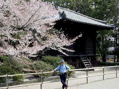 天武天皇が唐の鑑真和尚をまねき、759年に創立された唐招堤寺の金堂は平成の大修理中であった。 いまでこそ奈良の郊外にあるが当時は首都の中心街区であった。金堂はすべて解体され、ちょうど基盤が露出していた。2009/11/1修理完成。創建当時は極彩色に塗られていた証拠が多数見つかった。780年代伐採の木材が見つかっている。鴟尾(しび)は鎌倉時代のものだが割れていたので新たに焼いた という。この寺も講堂裏は桜の名所で花一杯であった。東側にある天平校倉造りの暗褐色の経蔵に桜が生えてみごとだった。唐招堤寺のあとは第11代垂仁天皇陵まで田舎道を散策、「あまがつじ」駅から近鉄で京都に移動した。