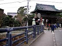 夷堂橋(えびすどうばし) 本覚寺境内を抜けて山門を出ると滑川に至る。ここに架かる橋が夷堂橋である。鎌倉十橋は、滑川支流に架かる橋が多くほとんど暗渠になっているが、滑川本流に架かる橋のため、その規模は大きく橋の原型をとどめている。2008/1/20本覚寺を背景に撮影。