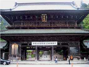 身延山入口で総門をくぐり、門前町に入る。日本三大門の一つといわれる立派な三門の前を通って奥へとすすみ、突き当たりの久遠寺の有料駐車場に車を停める。