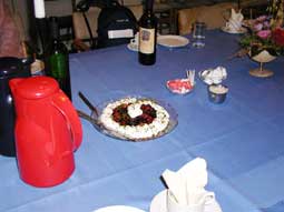 朝食を終えて、片づけをし、次の場所ホルセンスに向かう準備をします。お世話になったウラとヘニングといっしょにみなで記念写真をとって、強い握手やハグでお別れをしました。「よかったね〜」の声も出て、一路バスはホルセンスへ向かいます。天気もよく、思い思いに景色を楽しみました。 ユースホステルに着いてから、荷物をおいて、市の中心部まで歩いていきました。中華レストランで昼食をとったあと、クリスチャンの努める聖イブス小中学校へ行きます。残念ながら午後2時を過ぎていたので、児童はあまりいませんでしたが、校長のダンが学校を紹介してくれて、その後学校内を見学しました。校長室の会議室の壁にはここの卒業生で今はデンマークでも有名な画家になった人の絵が贈呈されて飾ってあるのですが、それは十字架に架けられたキリストのような格好をしたピエロで 「あかんべー」をしているものです。これを背景に職員や行政の役人と会議をするのですが、ダンによれば行政の役人は自分があかんべーをされているようであまりご機嫌ではないとのこと。デンマークの人たちのユーモアが感じられる光景です。日本なら役人におもねって視察のときはすぐに取り外すことでしょう。 音楽室には女性教員が残って何かしていたので、サービスで彼女がピアノを弾き、クリスチャンが歌ってくれました。この学校は音楽が盛んで、2006年10月には生徒のビッグバンドが日本にもやってきます。 その後は五つのグループに分かれて、ショート・ホームステイをしました。それぞれデンマーク人の普通の家庭にいって、午後のお茶と夕食をともにし、語らい、彼らのふつうの生活を知り、交流をするというのが狙いです。近所の人を招いての夕食会もあれば、若者同士で車に乗ってドライブするというところもあり、各グループそれぞれの楽しみ方をしました。 幹事の私は親友クリスチャンの新しい妻になるドレーテの家に、参加者4人で行きました。郊外の農村地帯にあって、広大な農地ももち、家畜も飼っています。馬ももっていて、彼女が手綱を引いて各自乗馬も試してみました。その後きれいな調度の客間でディナーをみんなで楽しみます。終わると居間でワインやコーヒー片手に語り合いました。ドレーテが教員ということもあり、藤森さんは教育の議論などをして盛り上がっていました。ドレーテは若い女子学生二人が積極的に家事を手伝うなどしたこともあり、日本の若者の元気のよさ、しっかりした点をあとですごくほめていました。 8月27日(土)