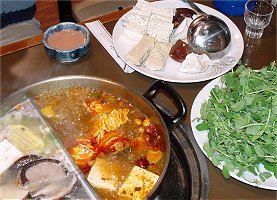 ほとんどスープだけの鍋底が600円/人はちょっと高いような気もしますが麻辣湯には多数の薬膳の食材が入っており煮詰まると辛さをいっそう増して絶品でした。 時々清湯で合いの手を入れると麻辣との撮り合わせは絶妙です。 やはり麻辣湯だけでは飽きが来るということでしょうか。 具は面白いところでボールのような油麺筋に野菜や肉を詰めた麺筋塞肉が絶品でした。 よく火が通ると麺筋がふわふわになり中の具とあいまって最高でした。 そのほかにも水餃子、魚丸、里芋、土豆(ジャガイモ)、大根、白菜、豆苗、凍豆腐、粉絲などなど鍋によく合う食材がそろっているので是非一度お験しください。