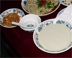 麻豆腐ついでに豆製品でいくと緑豆ととうもろこしからでんぷんを作ったときの副産物である豆汁も忘れがたい風味を持っています。 麻豆腐でもそうですが他店のものは酸味があるだけで臭みと旨味があまりありませんがここのものはどちらも他店のものとは一味も二味も違います。 特に辣鹹菜を齧りながら豆汁を口に含んだときの感動は忘れることができません。