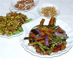 ところでお値段その他は・・・。 蘿蔔干毛豆 8元、笋尖千層肉 26元、鹹蛋黄獅子頭 28元、蕃茄苹果小排骨 26元、刀豆焼茄瓜 18元といったところです。